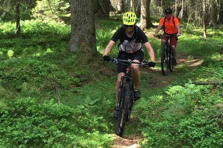You will be rewarded by the fantastic 360 degree panoramic view . For orientation you will find a panorama board with the surrounding mountain peaks. Off you go and equipped with helmet and protector you jet down the slopes. Through the small stream. To the right and left, the water splashes off your wheels in a high arc. At the Murauer Hütte you stop for a short break. On the cozy terrace you enjoy the sun's rays. The descent is on the already familiar path.